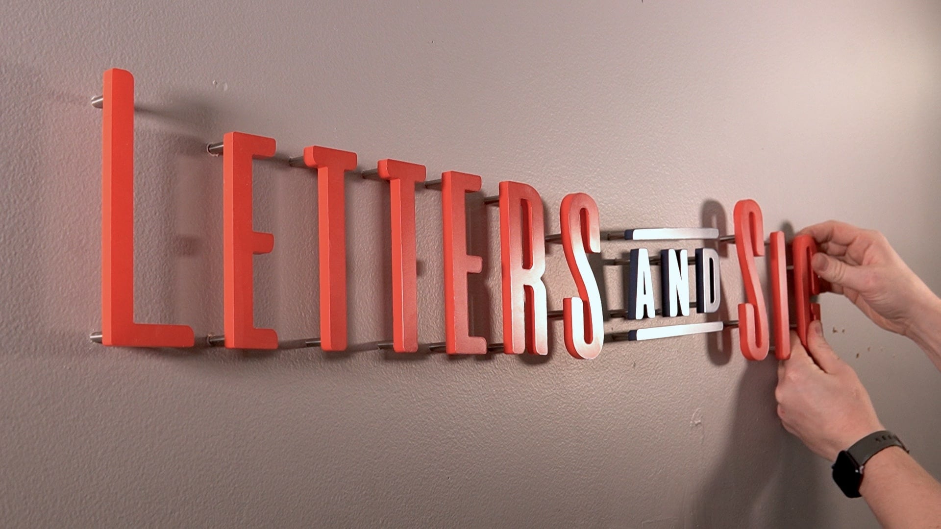 Exterior installs face heat/cold cycles, moisture, and wind forces. Stud mounts are the most dependable long-term method for outdoor signs—especially for larger or heavier letters.