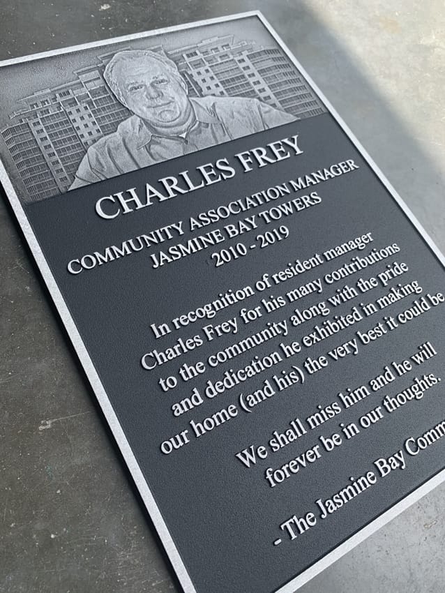Our Aluminum Plaques are one the most cost effective and popular plaque options we offer. Aluminum plaques are extremely versatile because of the variety of finishes and styles. Our most popular style is our Cast Aluminum Plaque with raised aluminum text and graphics, but we can also Precision Tool or do Etched Aluminum Plaques which have a unique engraved looked.